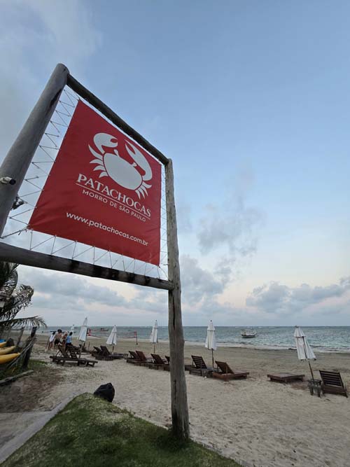 As praias são numeradas, da primeira à quinta. Fomos andando pelo centrinho até chegar à Segunda Praia, de onde saía o ônibus para os hóspedes do Patachocas. Mais vinte minutinhos e chegamos ao hotel!